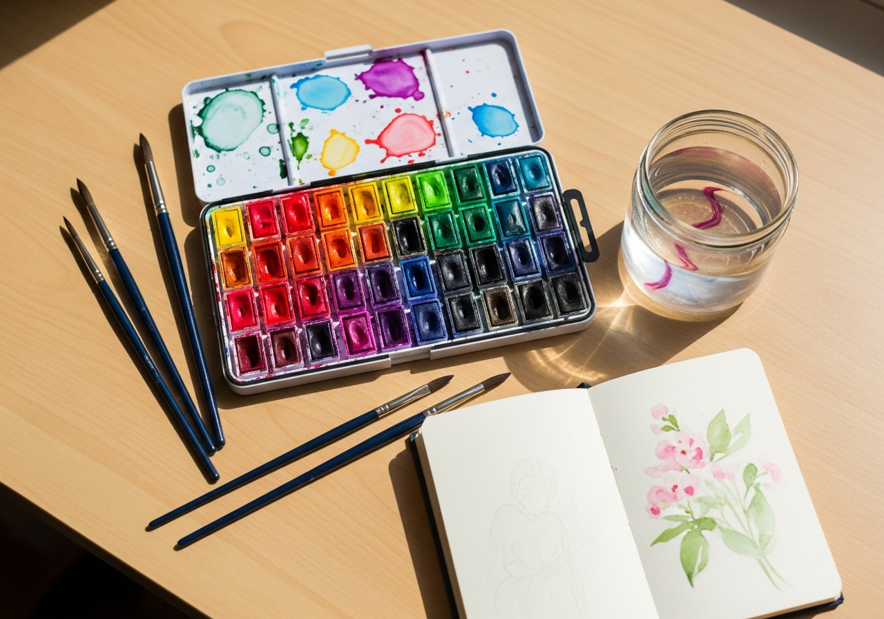 Waterra — это бережное пространство, где мы помогаем взрослым шаг за шагом освоить акварель. От первых робких заливок до уверенных, светящихся картин.